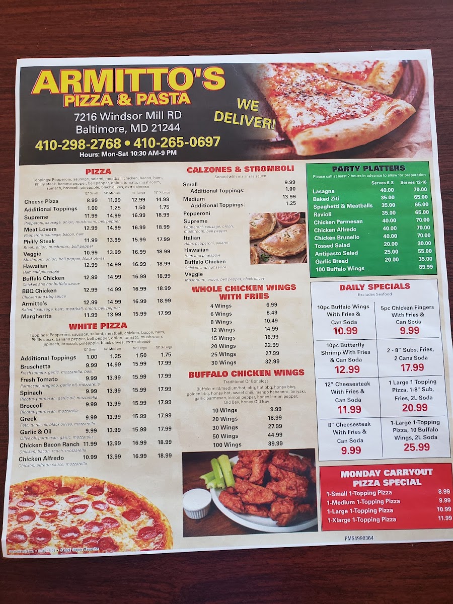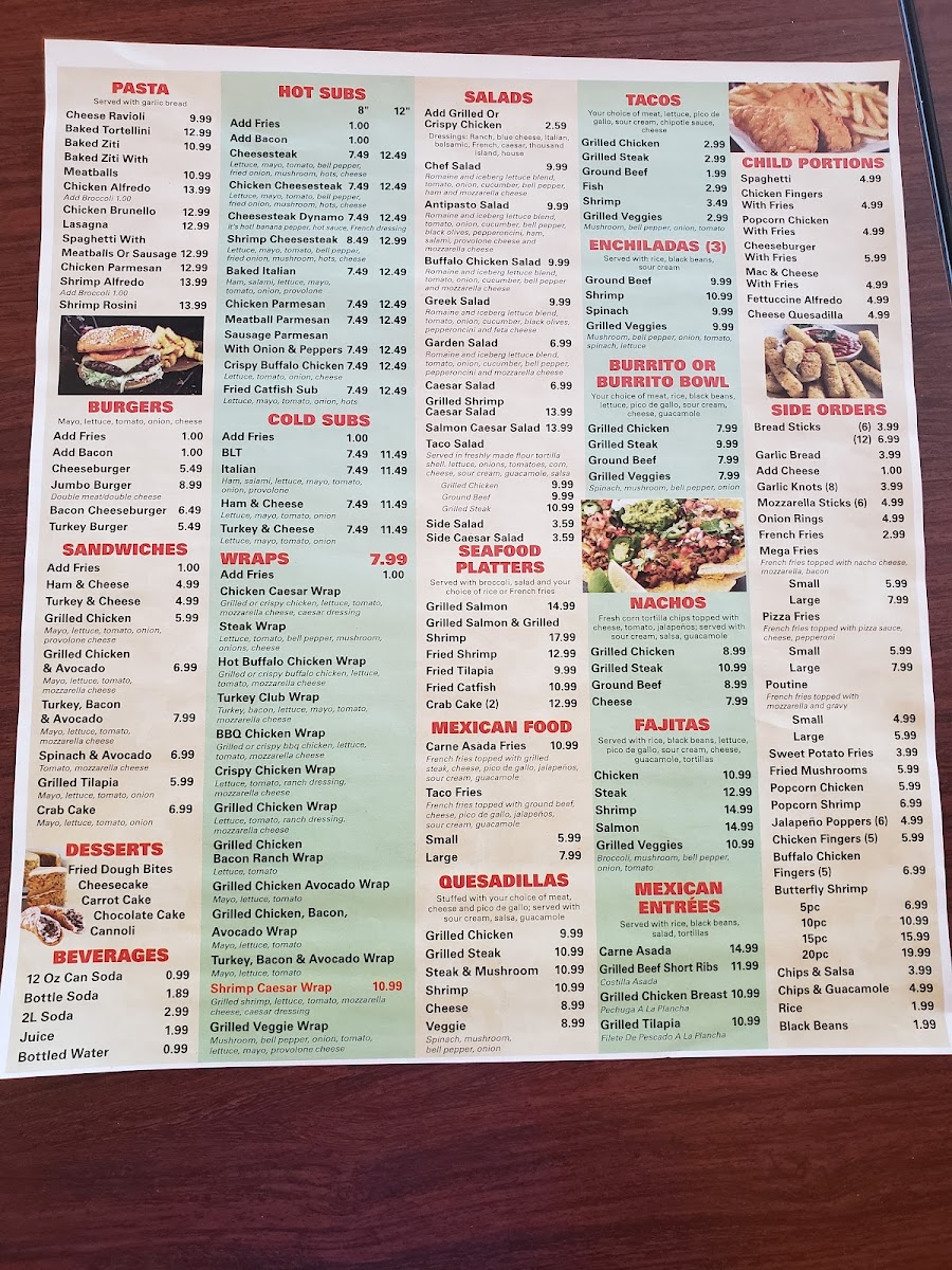 From a reviewer’s perspective, the menu at Diana’s Pizza & Subs offers a straightforward but satisfying selection that focuses on classic comfort foods at reasonable prices. The pizza options, including the Bruschetta Pizza and Fresh Tomato Pizza, provide lighter, fresh-tasting alternatives to traditional heavy pies. The cold sub section features simple, familiar choices like the BLT Sub and Ham Sub, while the hot subs stand out more, especially the Meatball Parmigiana Sub, Sausage Parmigiana, and Onion & Pepper Sub, all of which are hearty and flavorful options for anyone craving something warm and filling. The steaks and burgers section adds even more variety, with favorites like the Cheese Steak Special and Cheese Steak Dynamo, both appealing to those looking for a more substantial meal. To finish, the dessert menu offers sweet treats such as Fried Dough Bite and Cheesecake, which provide a nice ending to the meal. Overall, the menu is not overly large, but it covers all the essentials well, making it a reliable choice for pizza, subs, and casual comfort food.